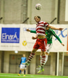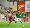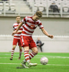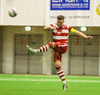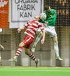 Fyrsta alvöru færi HK! Leifur Andri á aukaspyrnu af hægri kantinum og Brynjar Jónasson nær skallanum í átt að marki. Gunnleifur grípur hins vegar.