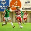 Blikar aftur með undirtökin núna. Hrvoje Tokic á áhugaverða skottilraun fyrir utan teig en boltinn var hársbreidd frá því að enda í innksti!