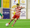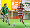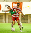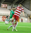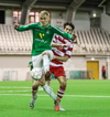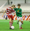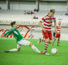 Casper Olesen hefur verið nokkuð rólegur hingað til í leiknum. Guðmundur Þór Júlíusson stöðvar núna för hans inn á vítateiginn með góðri tæklingu.