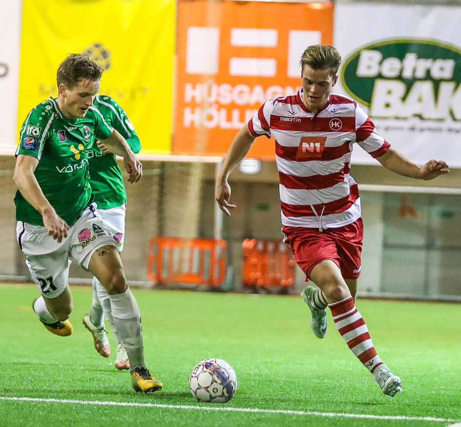 HK minnkar muninn. Löng sending á fjærstöng og Ólafur Íshólm fer í skógarferð. Brynjar nær að skora úr þröngu færi í autt markið.