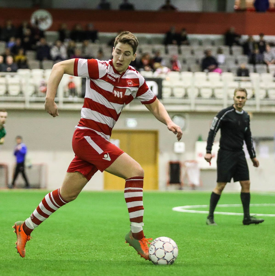 Danski framerjinn Casper Olesen er þessa dagana á reynslu hjá Breiðabliki og hann spilar með liðinu í dag. Hinn 21 árs gamli Casper kemur frá Sönerjyske í dönsku úrvalsdeildinni en hann á ellefu leiki að baki þar. Casper hefur einnig skorað fimm mörk í 21 leik með yngri landsliðum Dana.