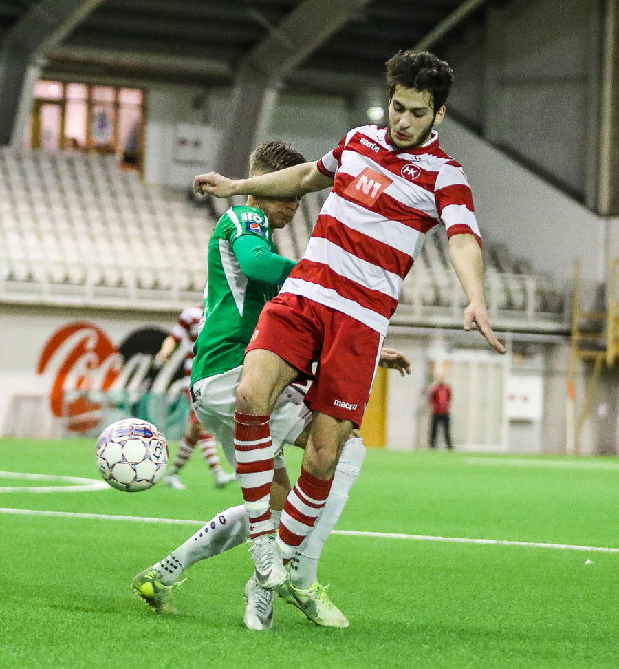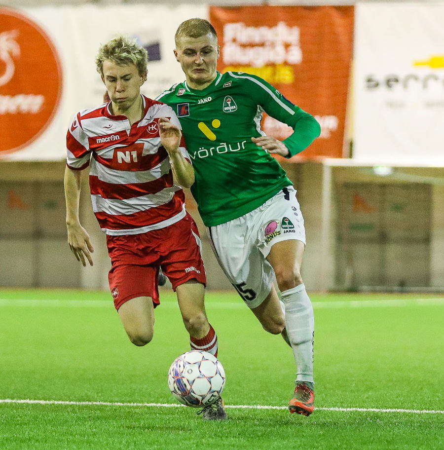 Brynjar Jónasson og Bjarni Gunnarsson hafa verið öflugir í framlínu HK í vetur og í fyrra. Damir og Elfar hafa haldið þeim alveg niðri það sem af er í dag.
