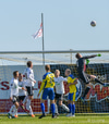Hættuleg hornspyrna frá Gunnari Þorsteins og nafni hans í markinu þarf að slá boltann yfir. Önnur hornspyrna
