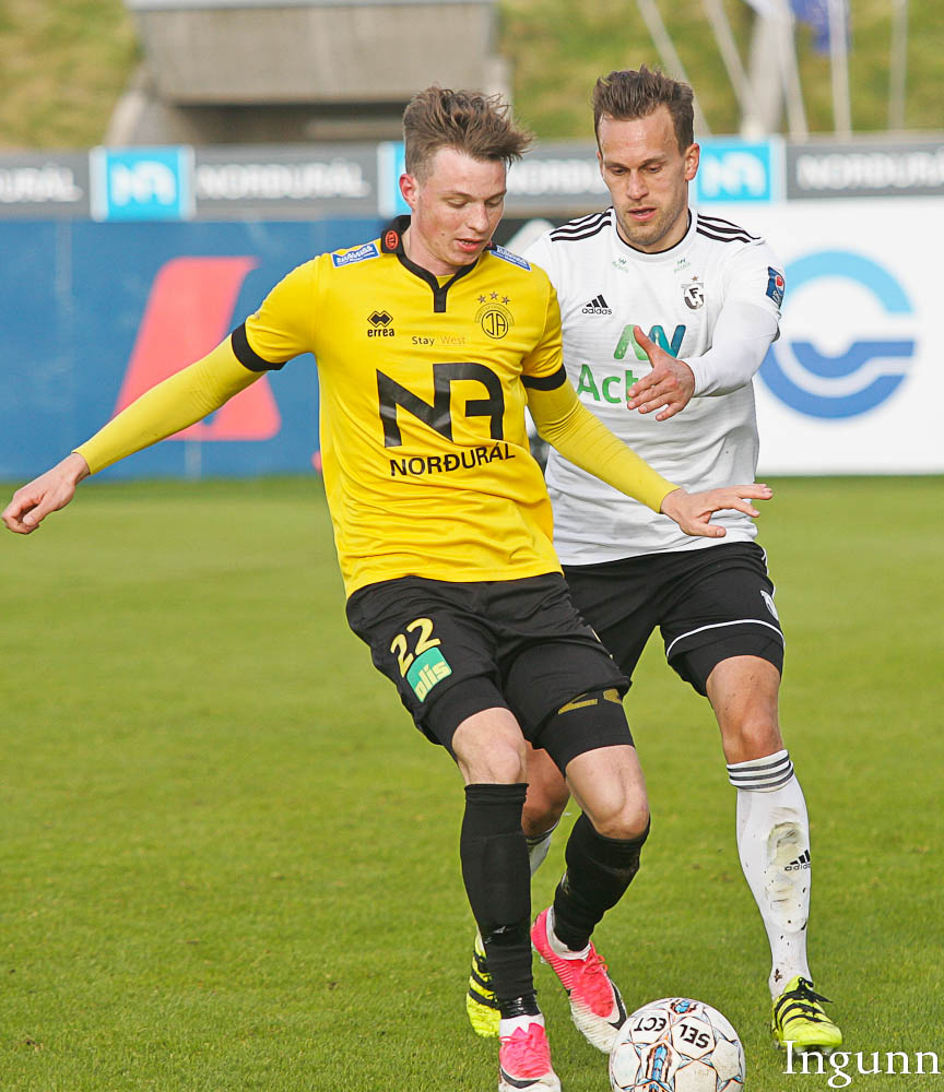 Skagamenn að sækja í sig veðrið. Bjarki Steinn við að komast í góða fyrirgjafastöðu inní teig en ætlar sér aðeins of mikið og missir boltann.