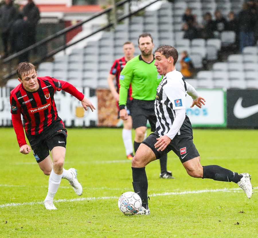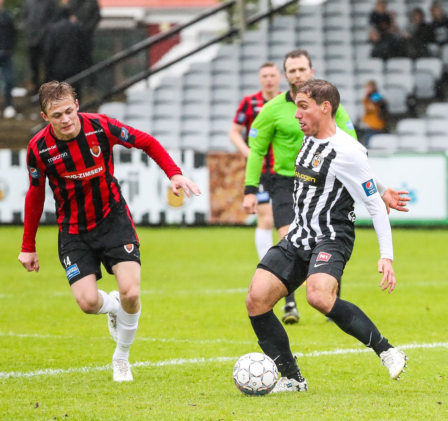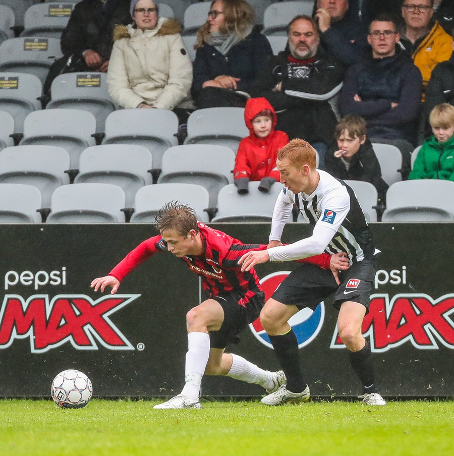 Bjerregaard í baráttunni inná teignum og er nálægt því að ná að pota í boltann en Larsen kemst í boltann á undan honum, við fáum mörk í þennan leik ég lofa því!