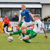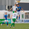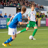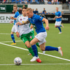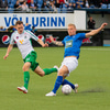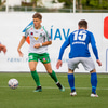 Brotið á Kolbeini fyrir utan teig. Alex brotlegur. Skotfæri. Oliver með skotið en boltinn í varnarvegginn.