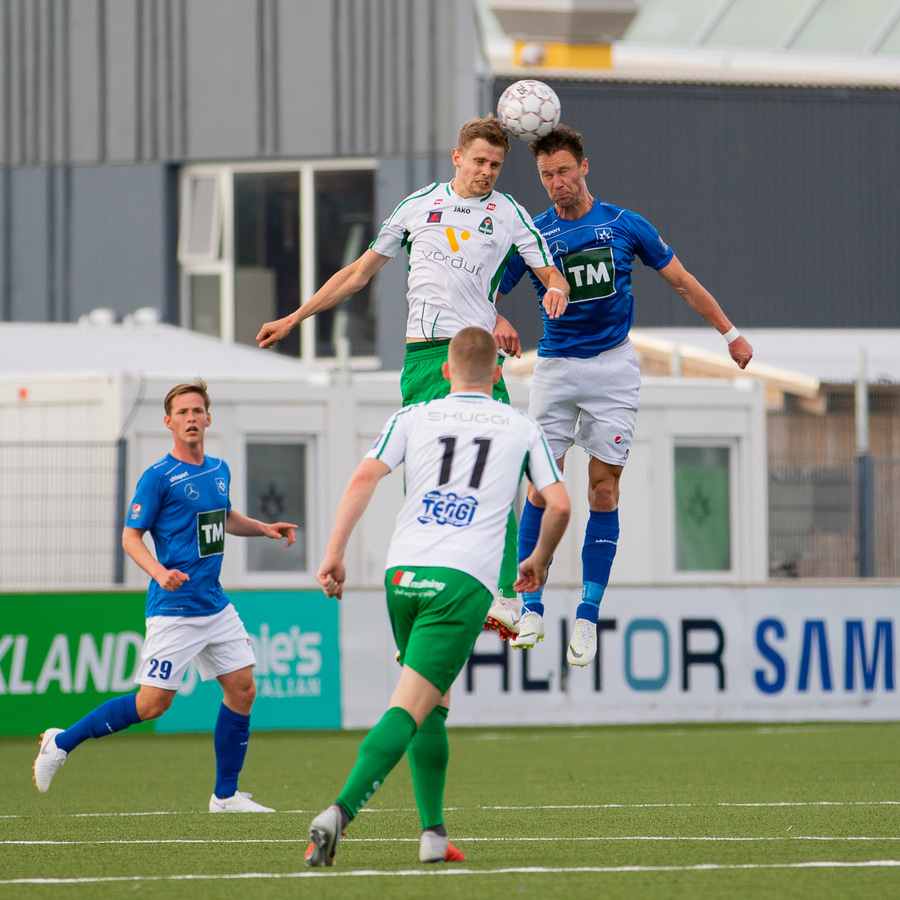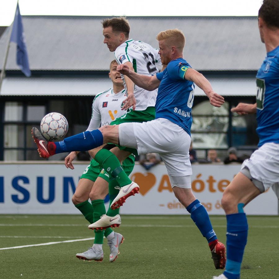 Hinumegin fékk Andri Rafn Yeoman fínt skotfæri en boltinn beint á Halla Björns. Líf í upphafi leiks.