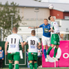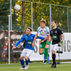 Viktor Örn með skalla yfir markið eftir hornspyrnu. Blikar sækja talsvert meira þessa stundina.