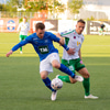 Samherja-árekstur. Andri Rafn Yeoman og Gísli Eyjólfsson, leikmenn Breiðabliks, lenda í árekstri á miðjum velli. Andri meiðir sig og þarf aðhlynningu.
