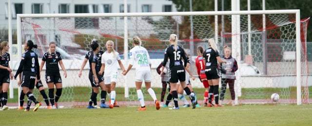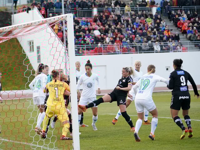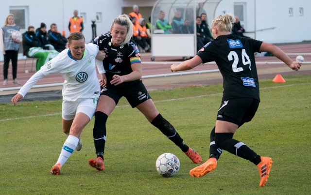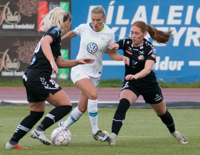 Wolfsburg liggur þétt á Þór/KA og fyrirgjafirnar svoleiðis dynja á þeim, eða þá að þær reyna að þræða sig í gegn.