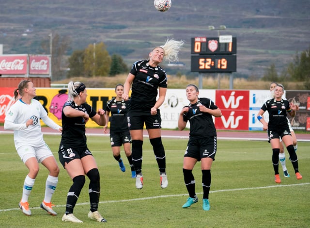 Harder í HÖRKU færi en skóflar boltanum yfir. Hvernig hún skoraði ekki þarna, skil ég ekki! Undarlegur varnarleikur hjá Þór/KA á sama tíma.