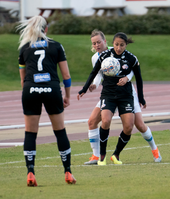 Claudía Neto var við það að prjóna sig í gegn með þríhyrning við Söru, en Elissa stöðvar hana og hreinsar.