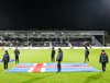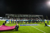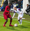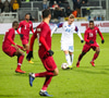 Það er slatti af krökkum úr yngri flokkum KAS Eupen hér rétt hjá mér í stúkunni. Þeir hvetja Katar í kvöld sem er kannski skiljanlegt. Enda eiga Katarar félagið þeirra.