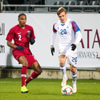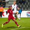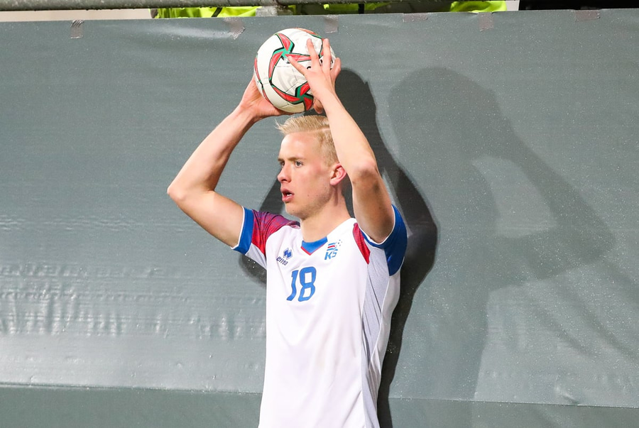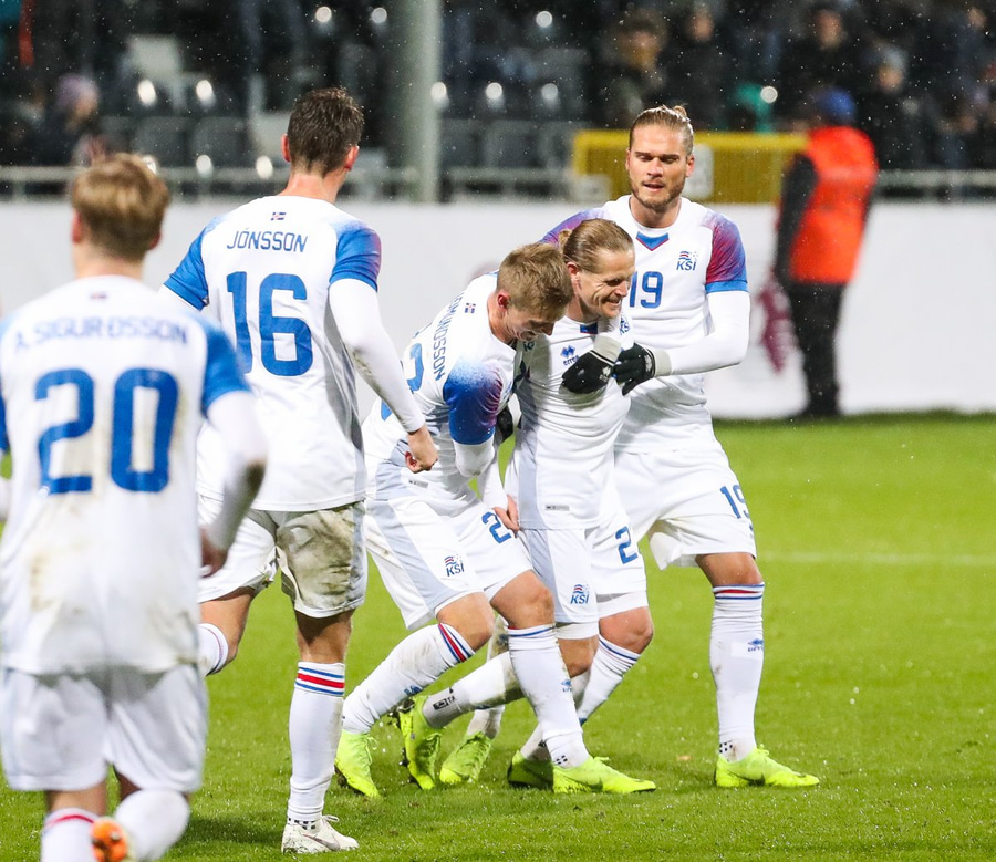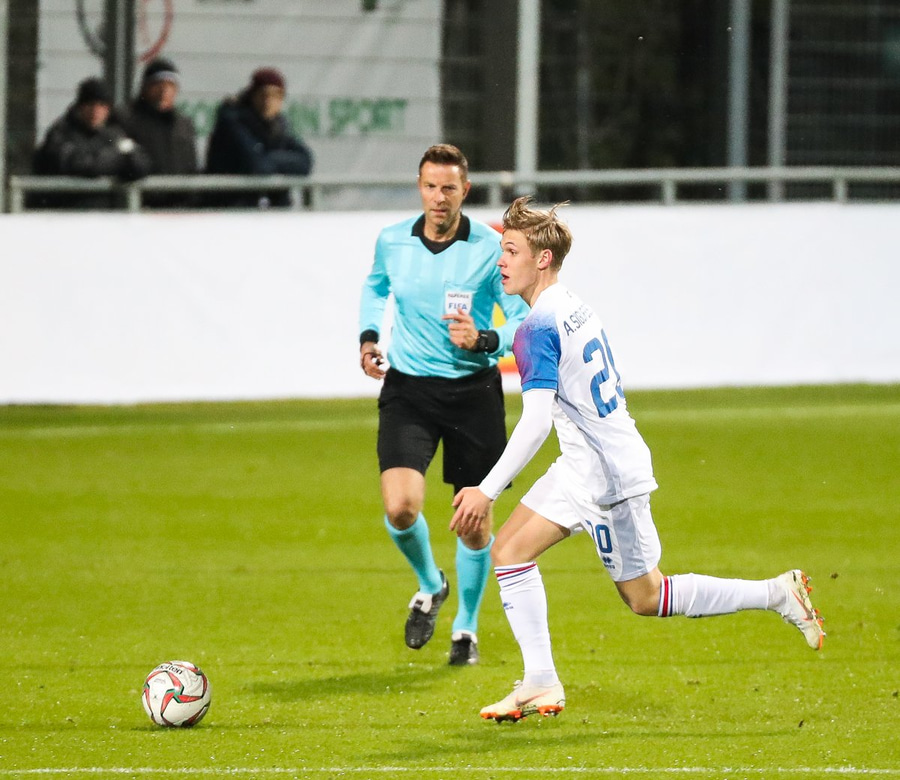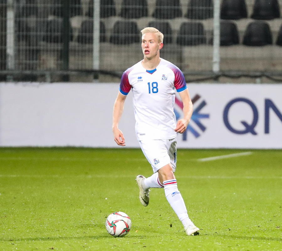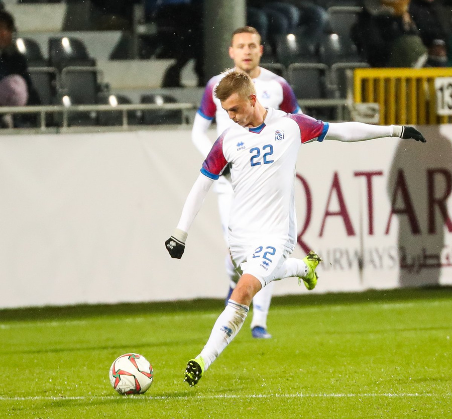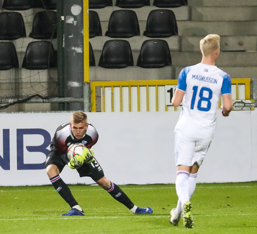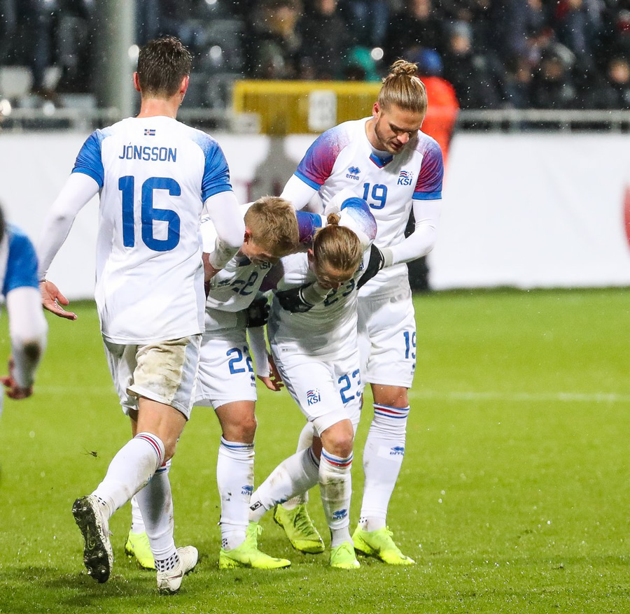 Þetta átti væntanlega að vera fyrirgjöf en er fastur bolti og endar sem skot. Rúnar Alex misreiknar boltann og hann endar í netinu. Íslendingarnir ekki viðbúnir þessu.