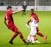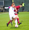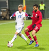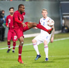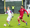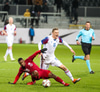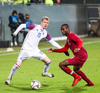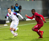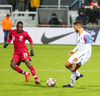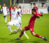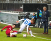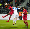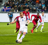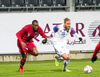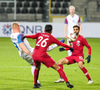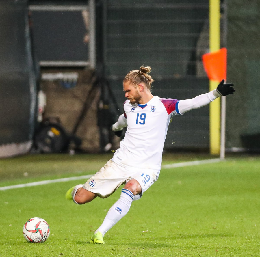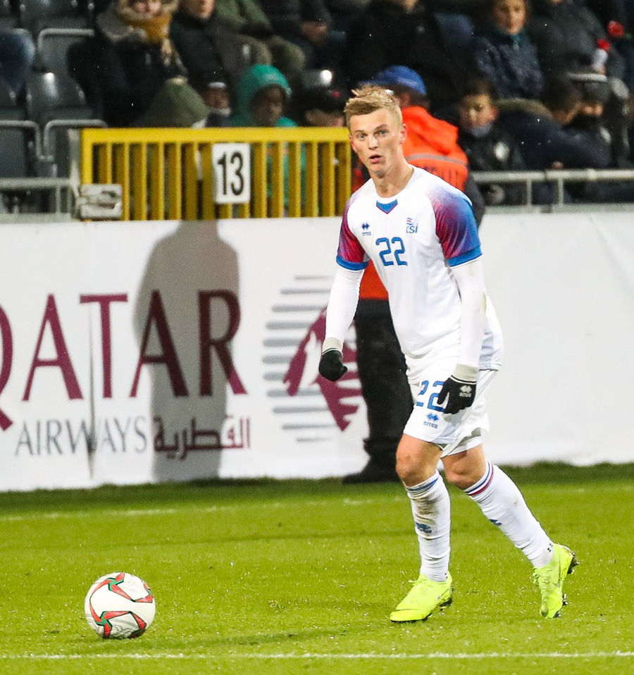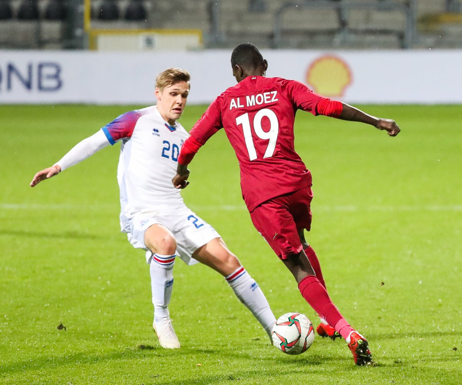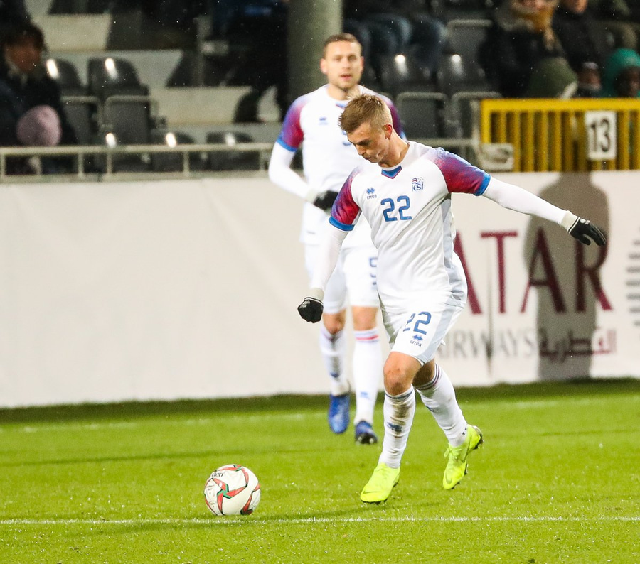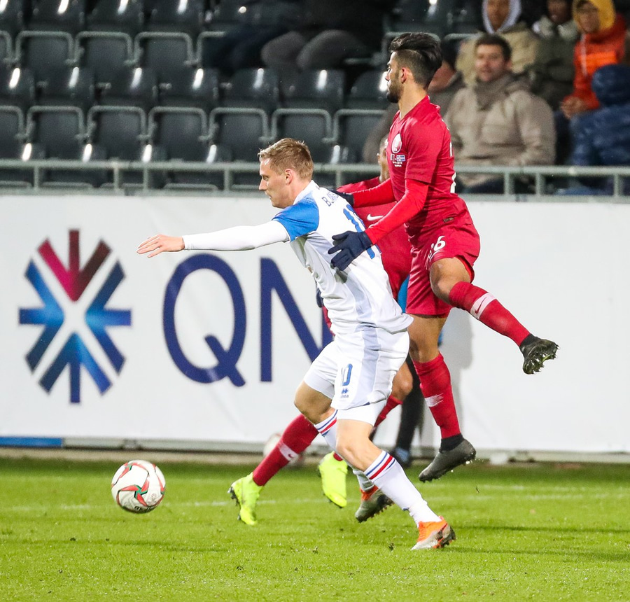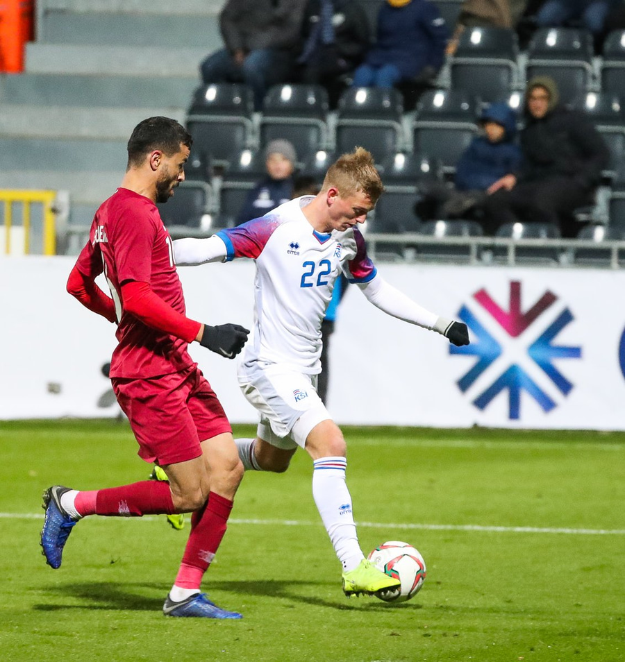 Hassan Afif nær að komast framhjá Rúrik og kemur með sendingu inn í teiginn frá vinstri. Sendingin slök og siglir afturfyrir?