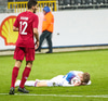 Enn ein meiðslin í glugganum. Kári lá í smá stund á vellinum áður en honum var skipt af velli.