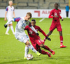 Fíflar þrjá leikmenn Katar upp úr skónum og Madibo sparkar hann svo niður.