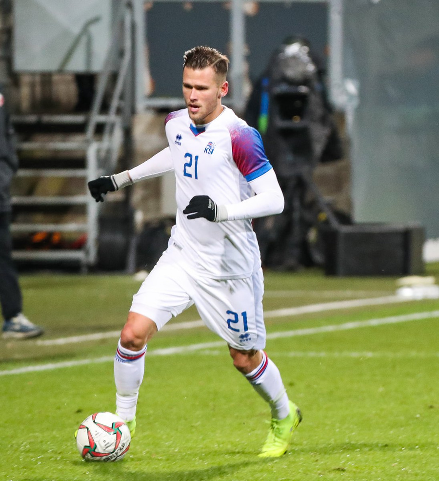 Ari Freyr Skúlason og Rúrik Gíslason eru vængbakverðir. Á miðjunni eru Arnór Ingvi Traustason og Eggert Gunnþór Jónsson.