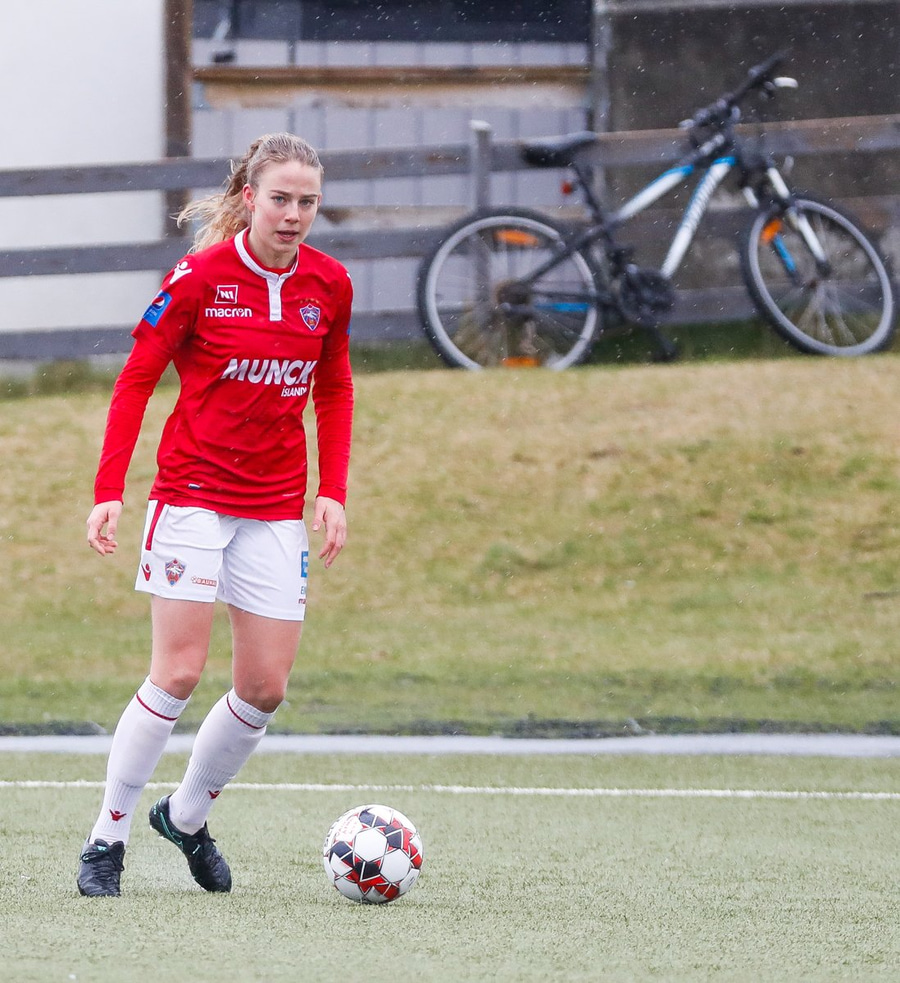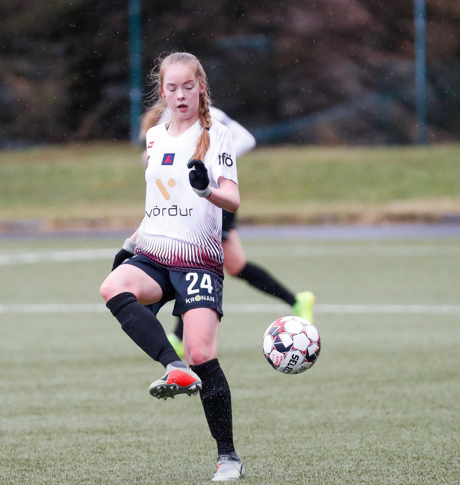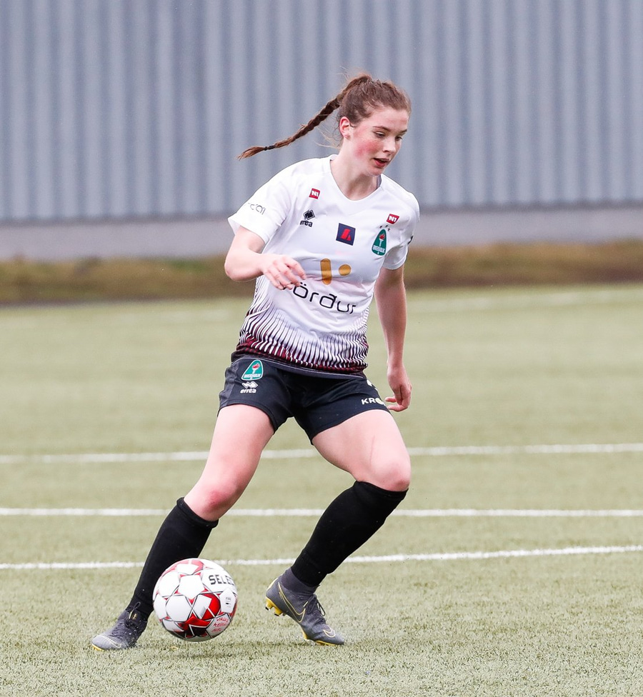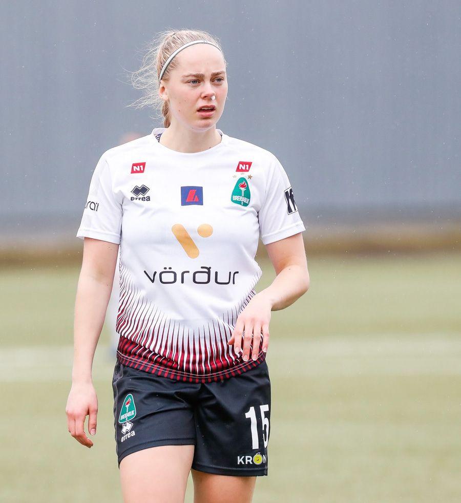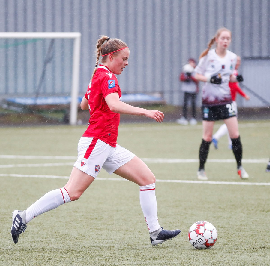 Elín Metta nálagt því að skora en hittir boltann ekki nógu vel! Kemur langur bolti upp í hornið á Hlín sem tekur Sóley á og leggur hann fyrir á Elín Mettu en skot hennar fer framhjá markinu!