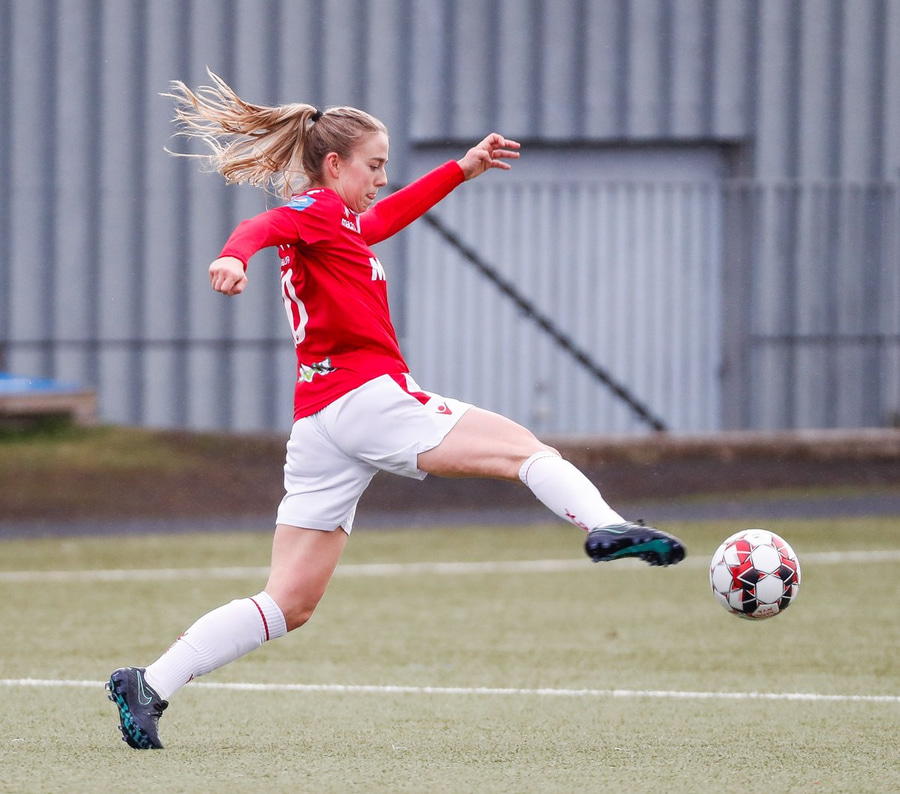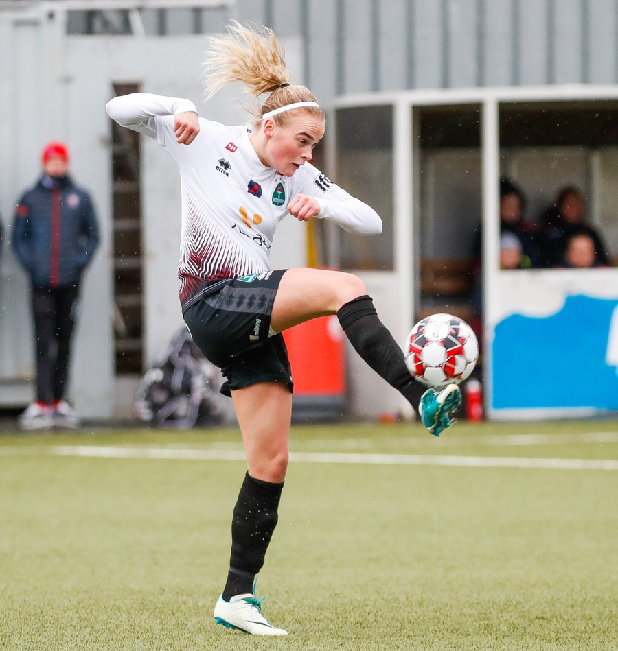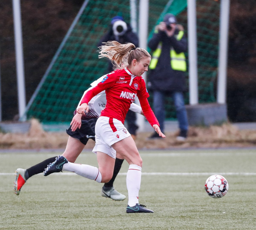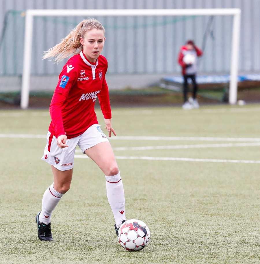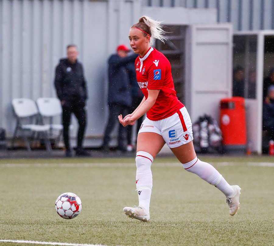 Elín Metta nálagt því að skora en hittir boltann ekki nógu vel! Kemur langur bolti upp í hornið á Hlín sem tekur Sóley á og leggur hann fyrir á Elín Mettu en skot hennar fer framhjá markinu!
