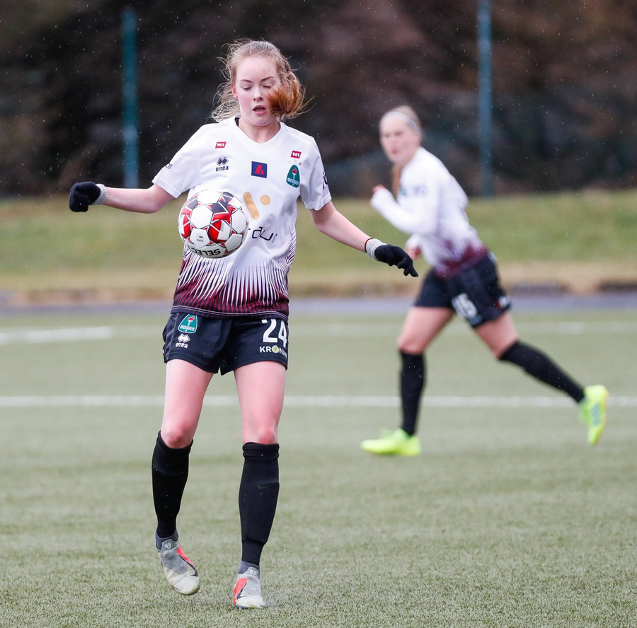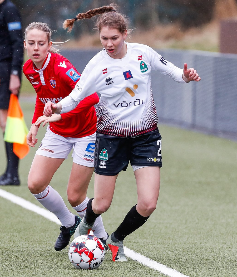 Hvað er að frétta hérna? Rosalega liggur illa á hafsentum Vals í dag. Rífur bara Sólveigu niður þannig að treyjan stækkar um 2 númer!