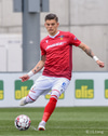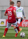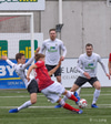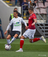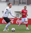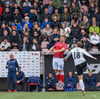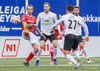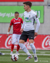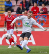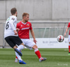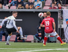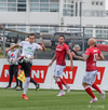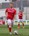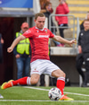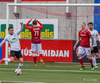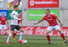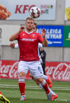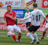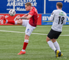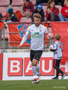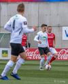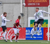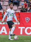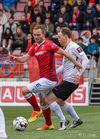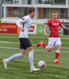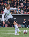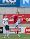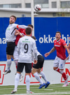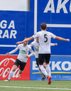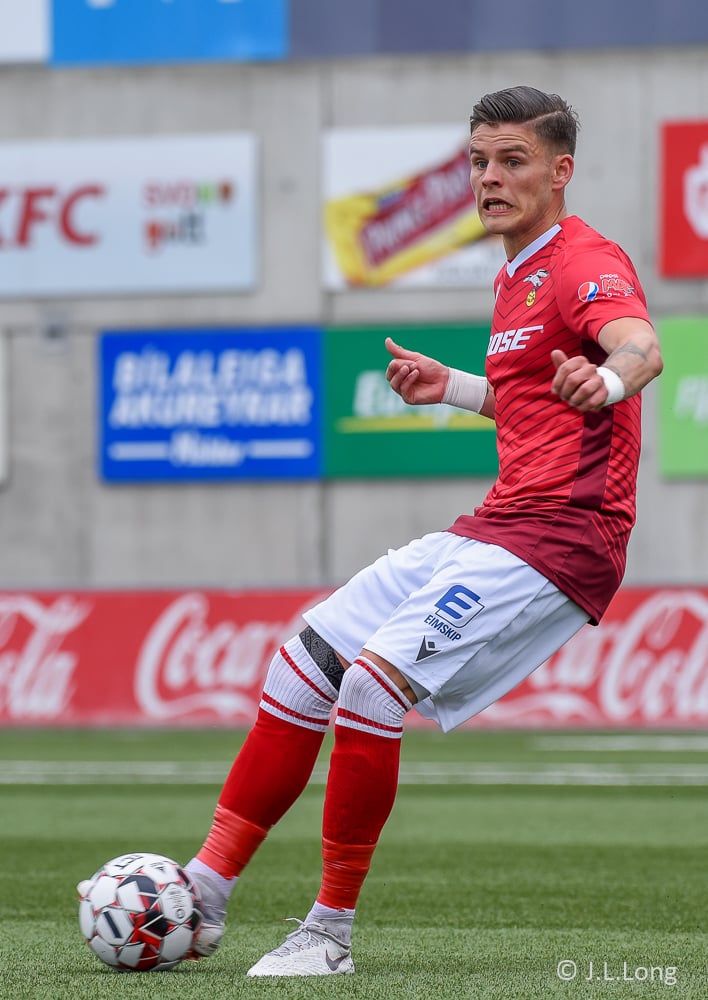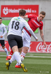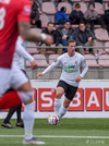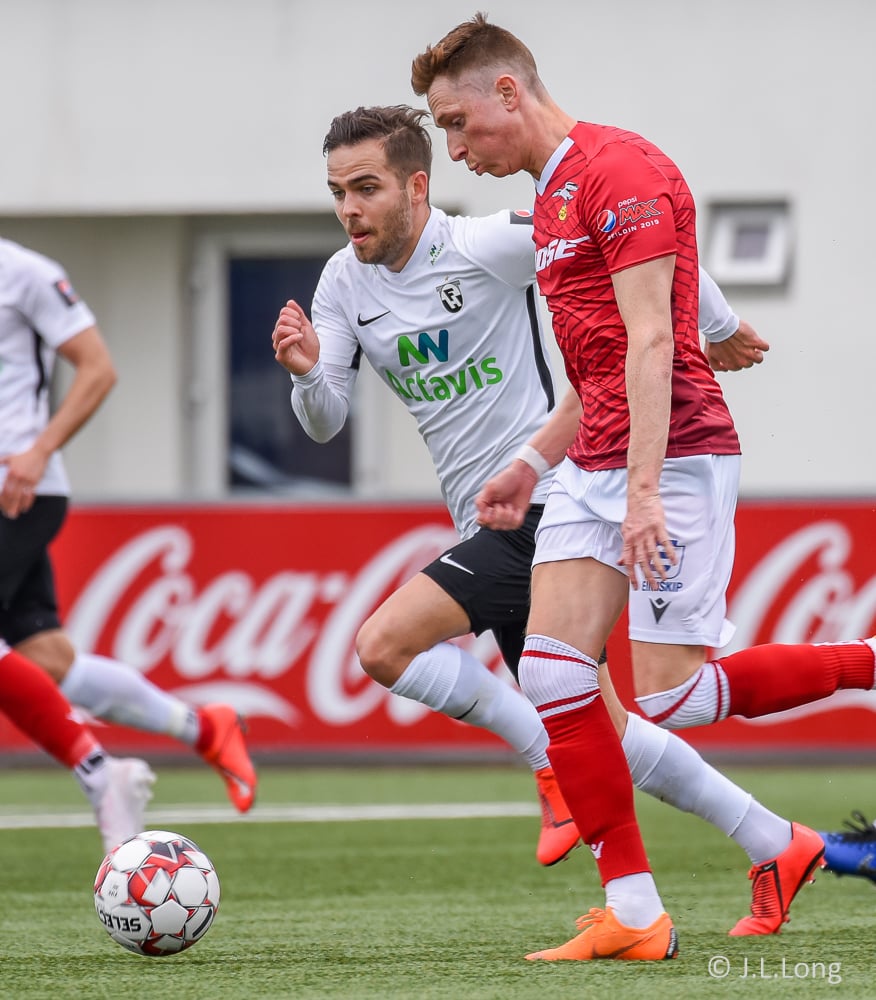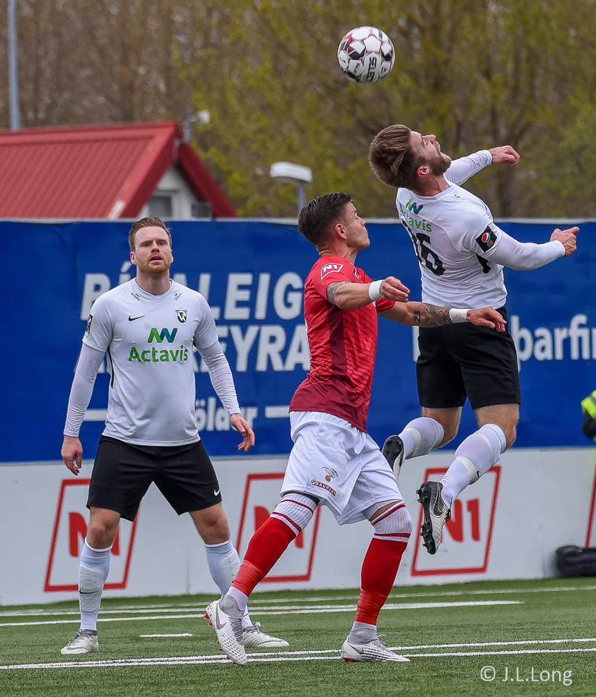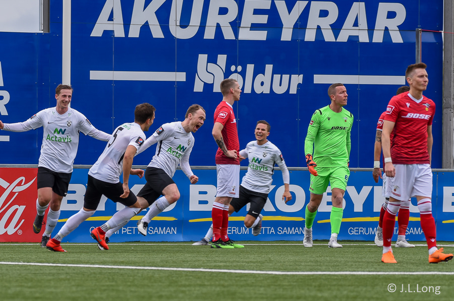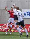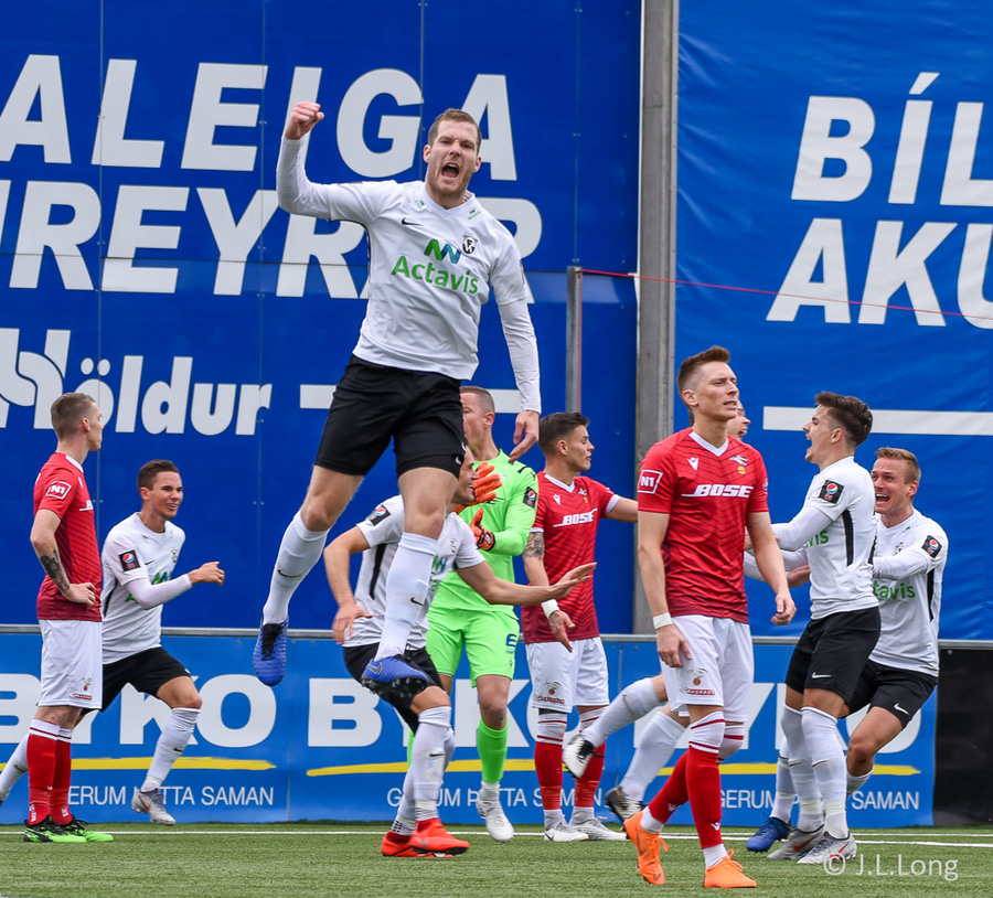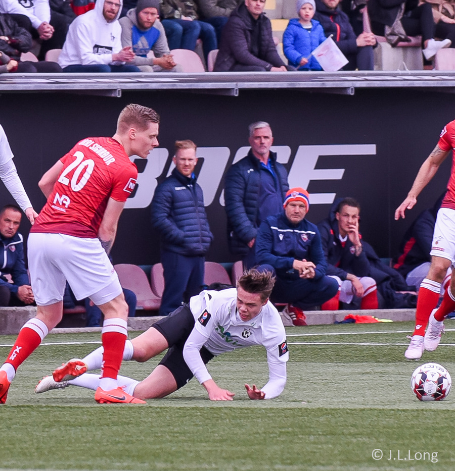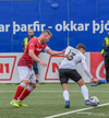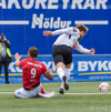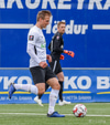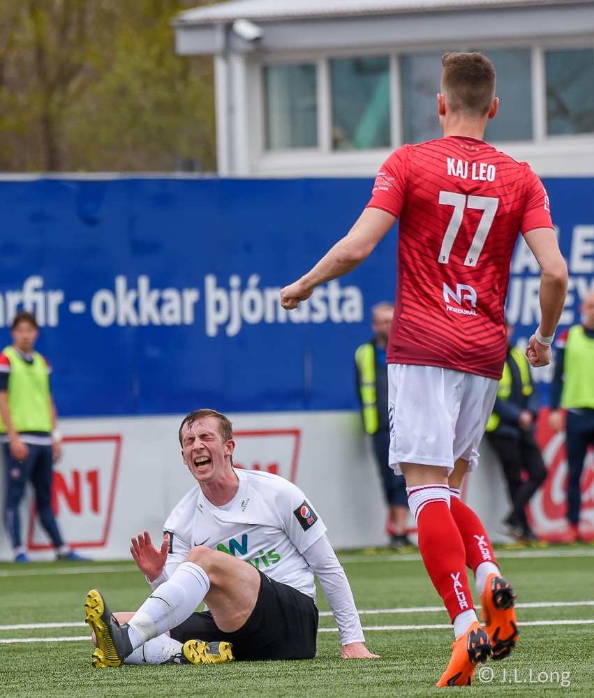 Björn Daníel fer hér upp vinstri kantinn og nær góðri fyrirgjöf á Jákup en skalli hans fer framhjá markinu.