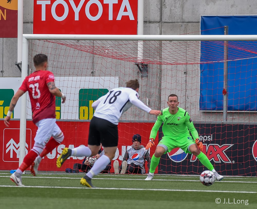 Besta færið hingað til, Brandur með frábæra sendingu innfyrir á Jákup sem skýtur rétt framhjá.