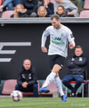 Kaj Leó hleypur hér með boltann frá hægri til vinstri fyrir utan teig og fer svo í skotið en það fer í Guðmann og í innkast, fínn sprettur.