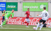 Kaj Leó reynir hér að koma boltanum á Gary sem lúrir á fjær en boltinn sveigir framhjá markinu.