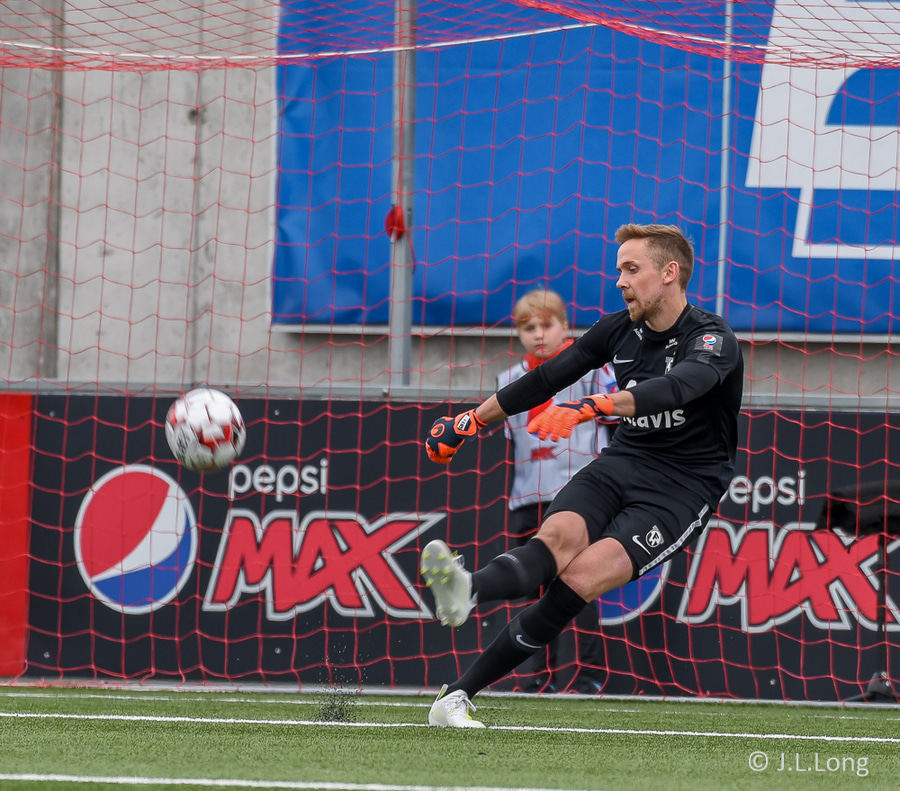 Beint eftir þessi öskur frá Guðmanni þá kemur Petry með langan bolta og nú kemur Gunni út en missir þá af honum, Gary nær boltanum en Pétur kemur á straujinu og bjargar með frábærri tæklingu.