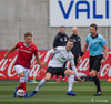 Hjörtur Logi hefur betur gegn Birki Má hérna á vinstri vængnum og kemur honum inn í teig á Atla sem þarf að teygja sig í hann og þaðan fer boltinn á Valsara sem koma honum frá.