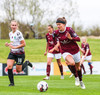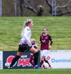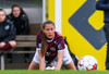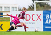 Þóra Jónsdóttir reynir fyrirgjöfina og Magdalena Anna er nálægt því að komast í boltann en Sonný Lára vel vakandi og kemur út og grípur boltann.