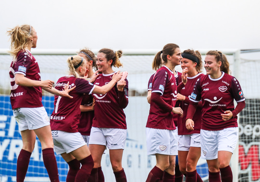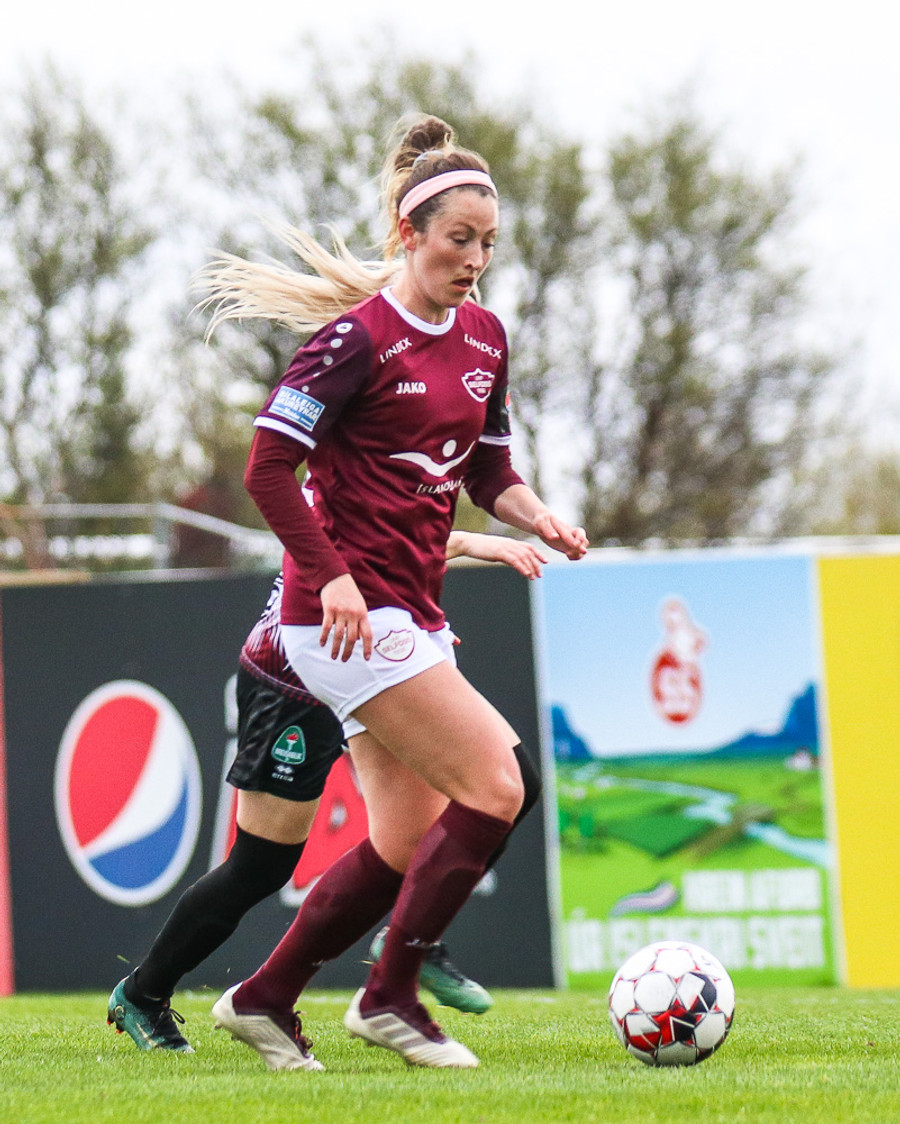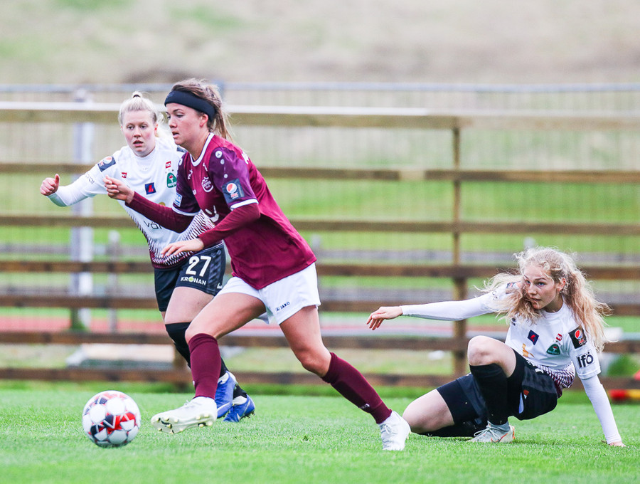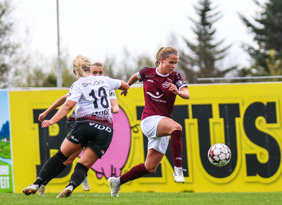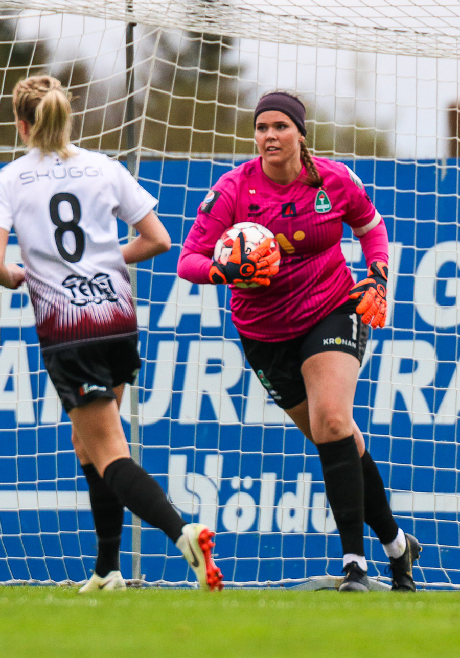 Hólmfríður Magnúsdóttir með misheppnað skot, langt framhjá. Fín tilraun en þessi var aldrei að fara að skapa neina hættu.