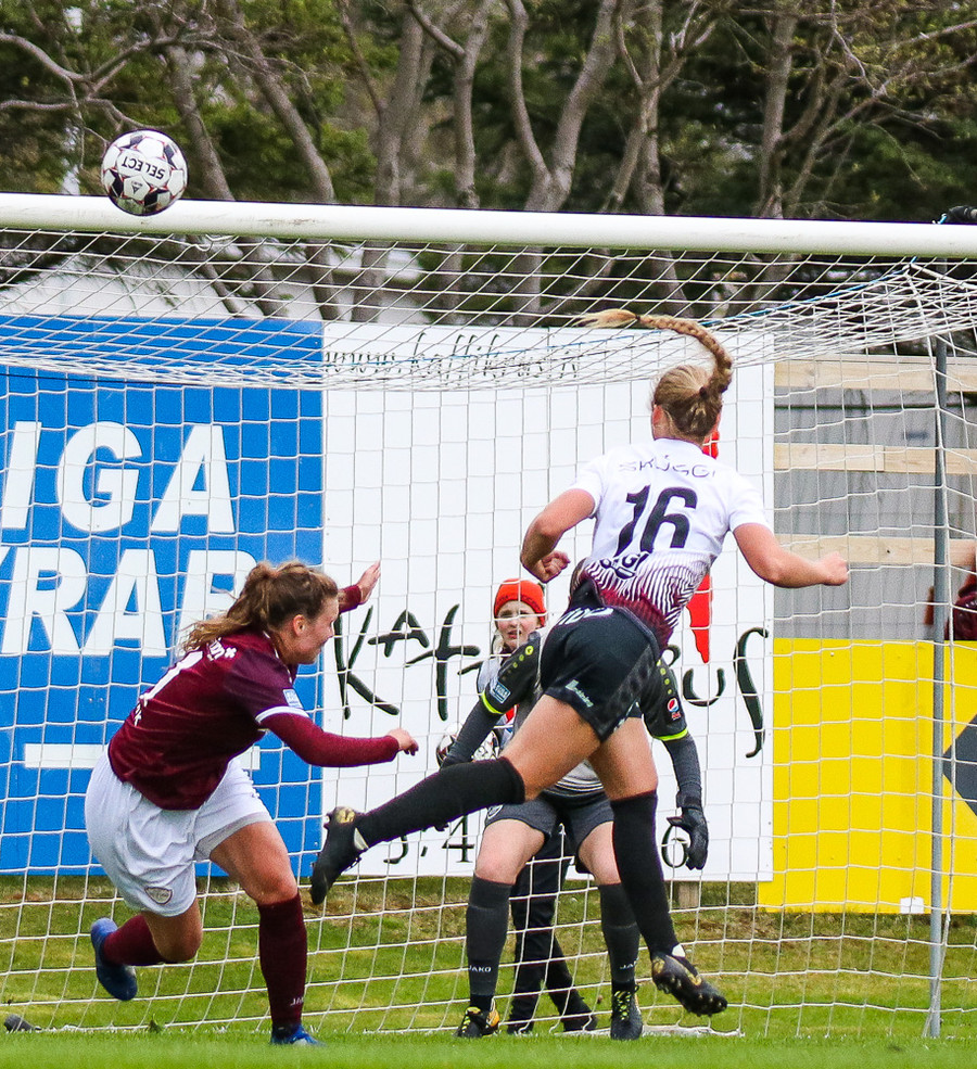 Alexandra Jóhannsdóttir með fínan skalla rétt framhjá marki Selfyssinga. Krafturinn í skallanum ekki nægilega mikill.