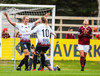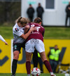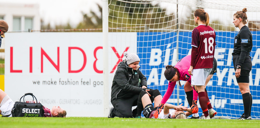 Þóra liggur eftir, lenti illa eftir skotið. Fjolla Shala liggur líka eftir. Sýndist þær hafa skollið saman.
