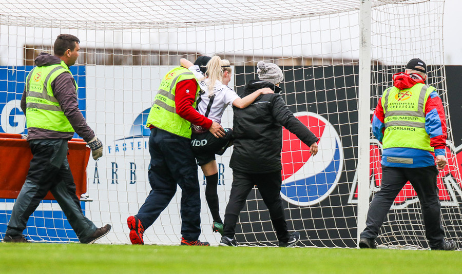 Fjolla þarf skiptingu hérna eftir 25 mínútna leik. Áfall fyrir Blika.