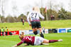 Magdalena Anna Reimus leggst í grasið og fær aðhlynningu. Hún er auðvitað grjóthörð, kemur alltaf til baka.