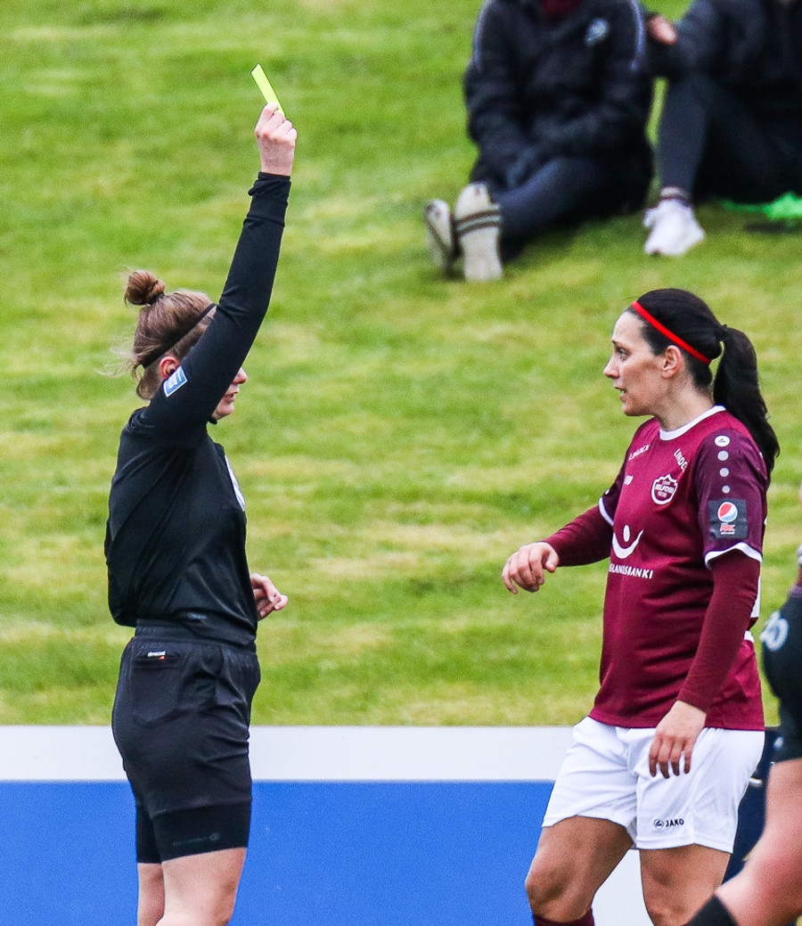 Sonný Lára að leika sér að eldinum. Magdalena Anna ansi nálægt því að komast í boltann, Sonný heppin.