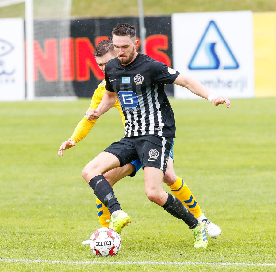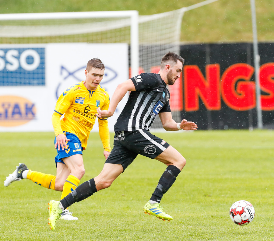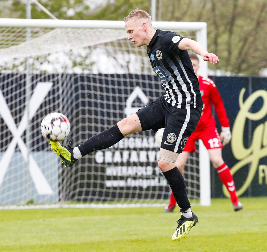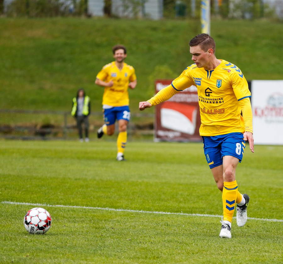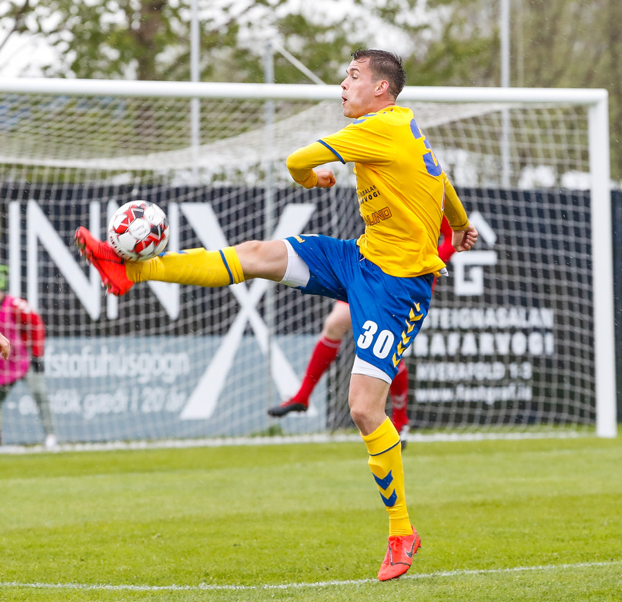 Arnór Breki með geggjaðan bolta inn á teiginn og Ström hefur hreinlega of mikinn tíma á boltanum þannig hann tekur móttöku og bíður og bíður þangað til að hann tekur skotið í varnarmann.