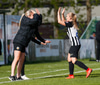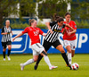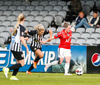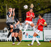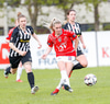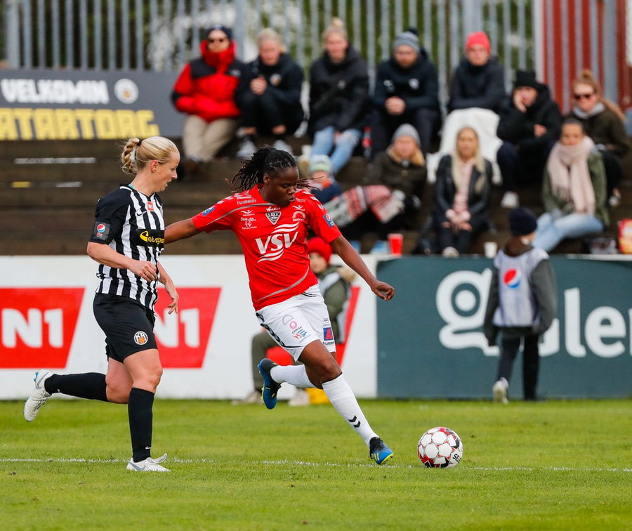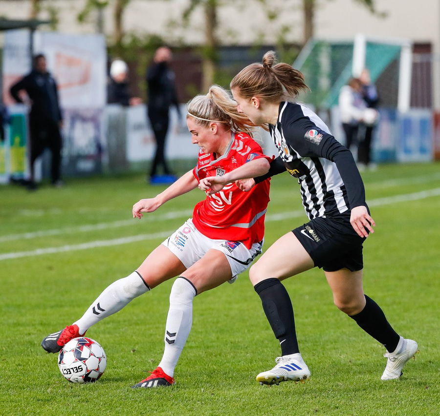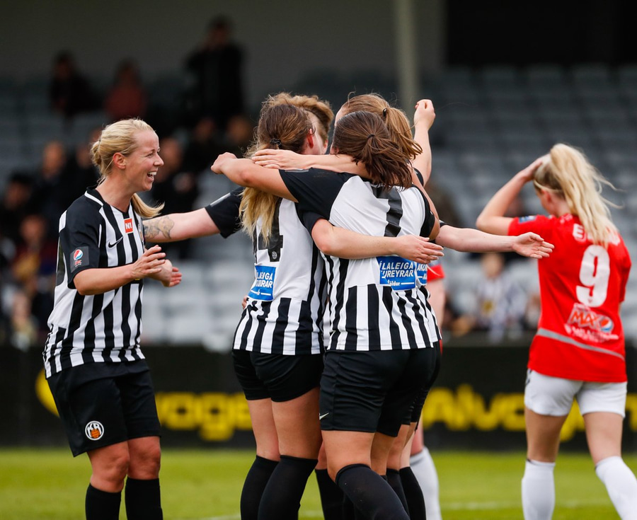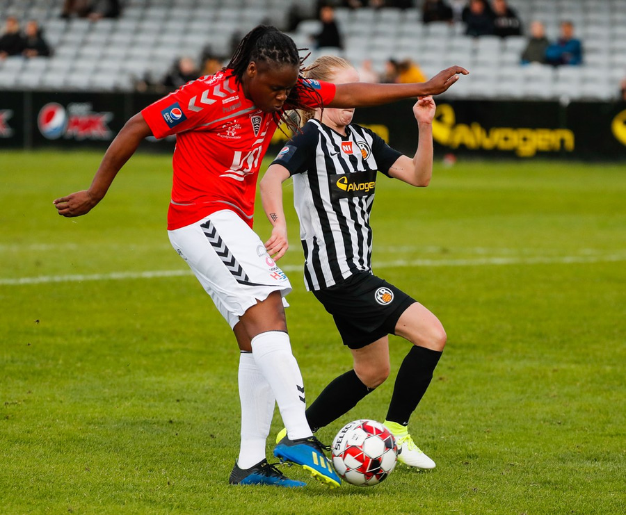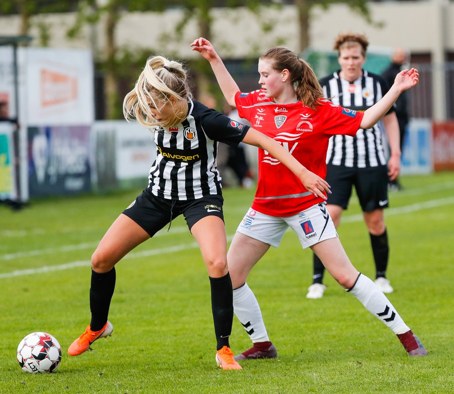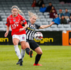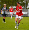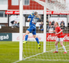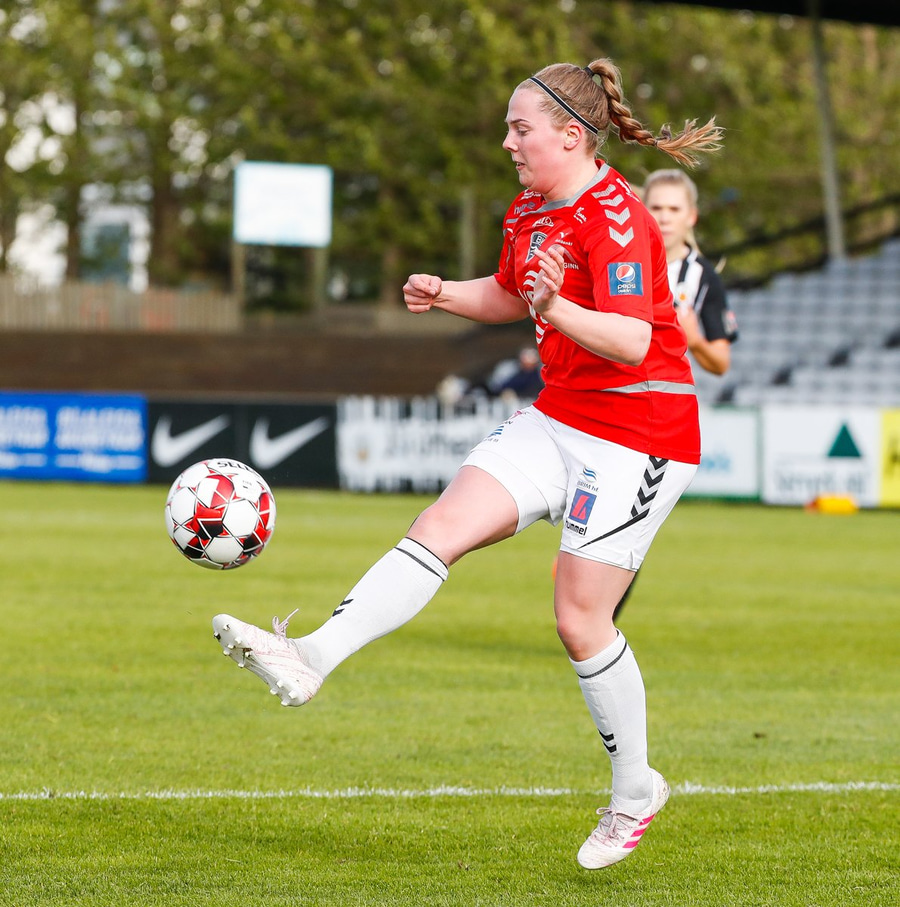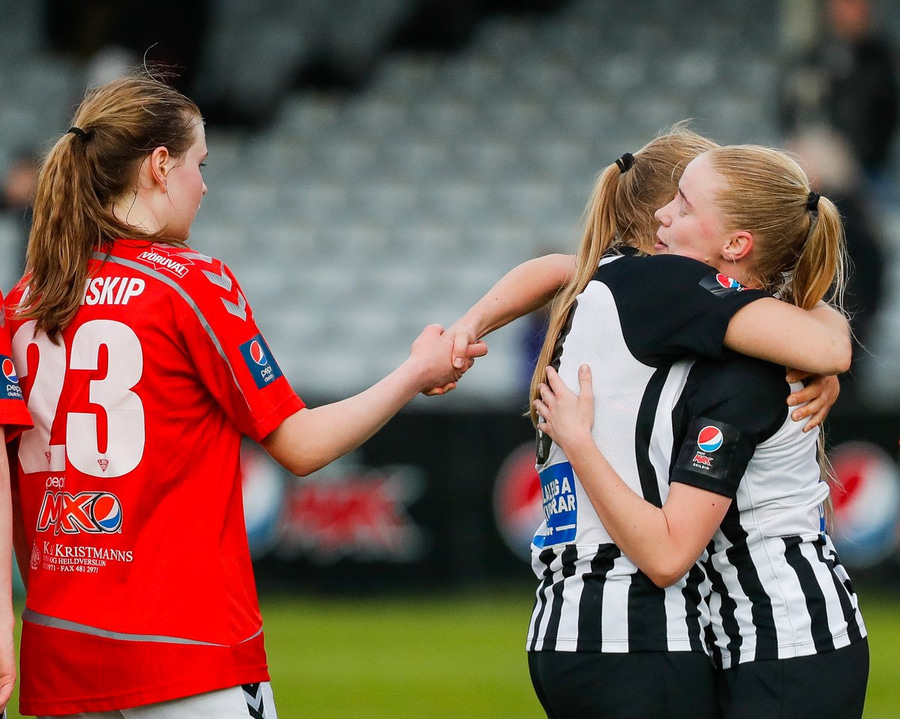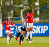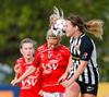 Guðrún Bára með flotta fyrirgjöf sem Cloé skallar í netið.