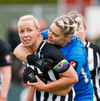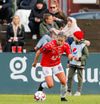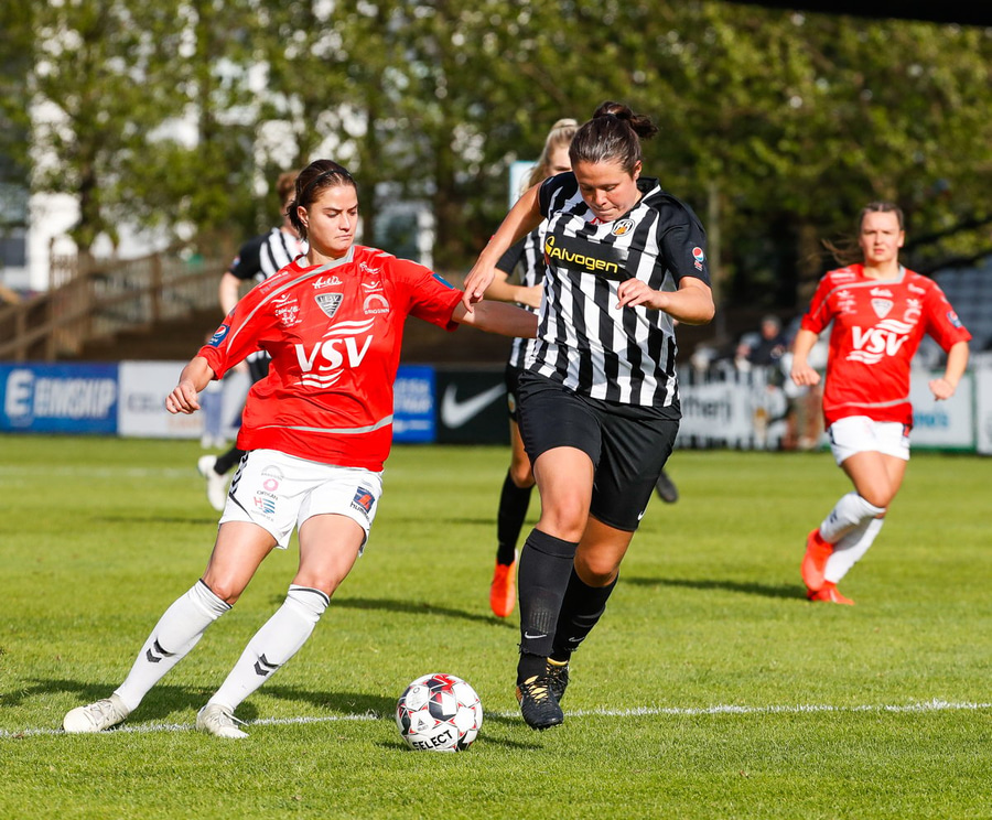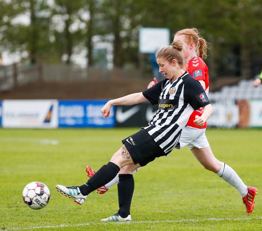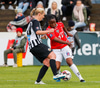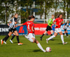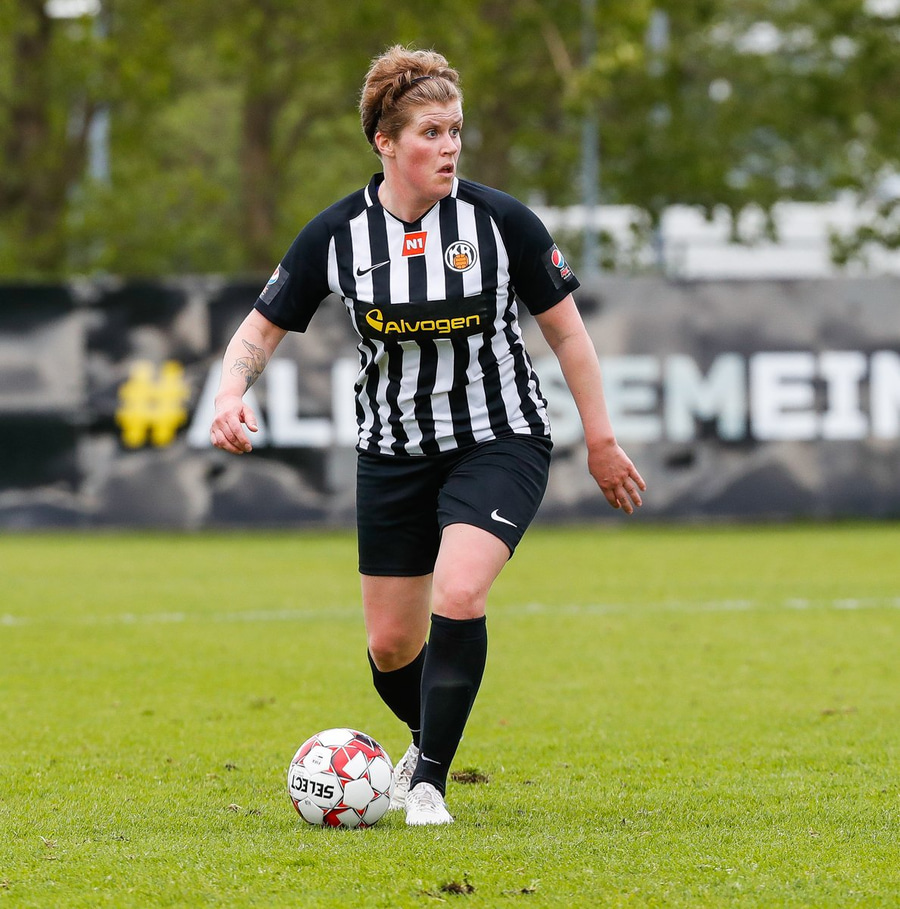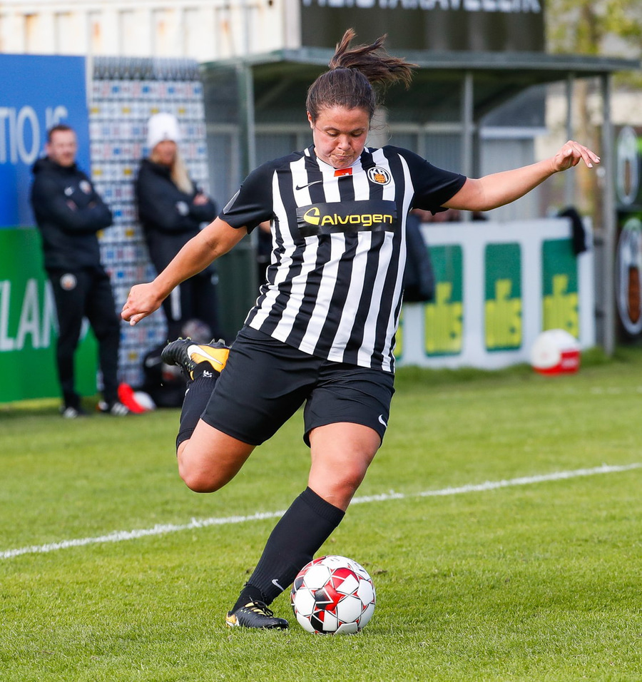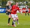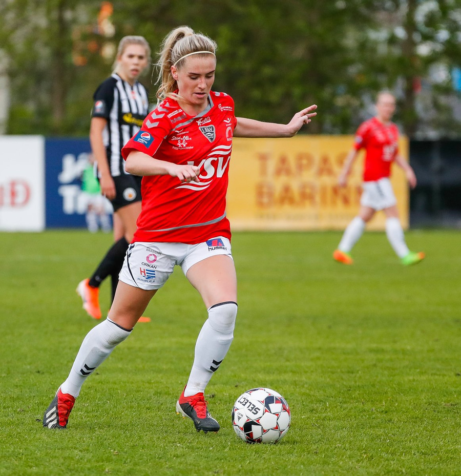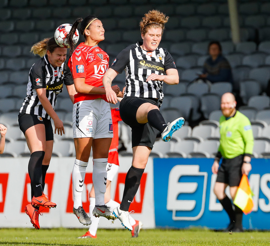Enn sækja gestirnir en Caroline dæmd rangstæð. Hún er búin að vera að spila í miðverðinum í dag en er komin ansi framarlega.
