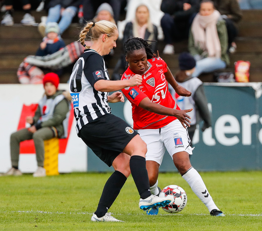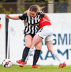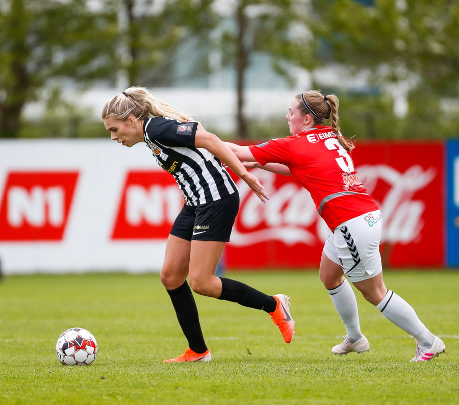 Ásdís vinnur boltann af Júlíönu í vörninni og kemur boltanum fyrir en engin mætt þar.
