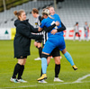 Gult spjald á bekkinn. Leit út eins og Ragna Lóa væri að fá þetta spjald fyrir mótmæli en Bojana fékk spjaldið. Vildu fá aukaspyrnu þegar Gumma og Katrín voru að sleppa í gegn.