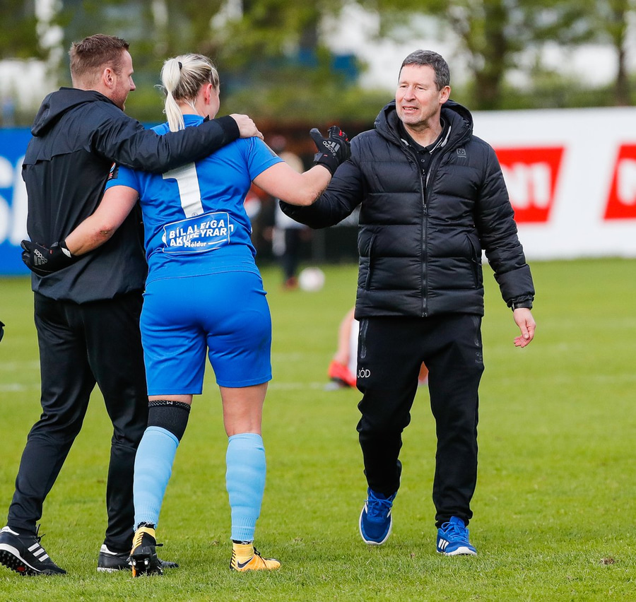 Ásdís með hornspyrnuna beint í hendurnar á Guðný í markinu. Hún nær ekki að taki á boltanum, missir hann frá sér og Ingunn rétt kona á réttum stað og setur hann yfir línuna.