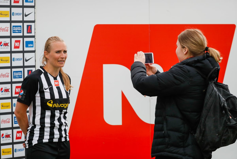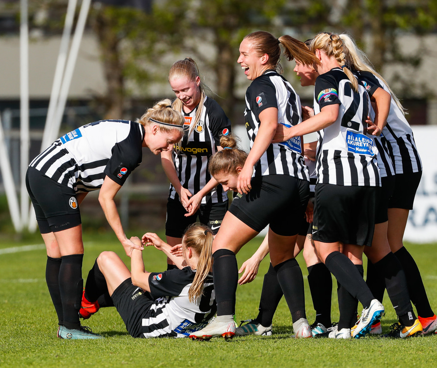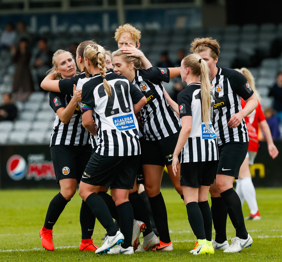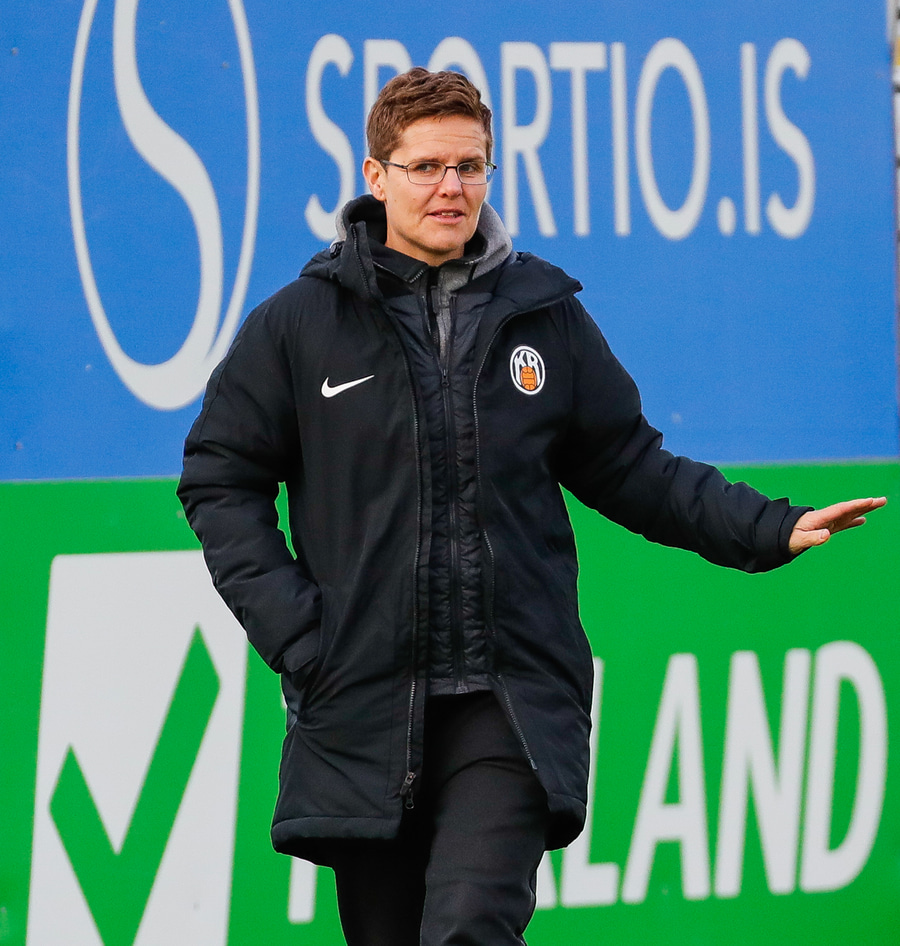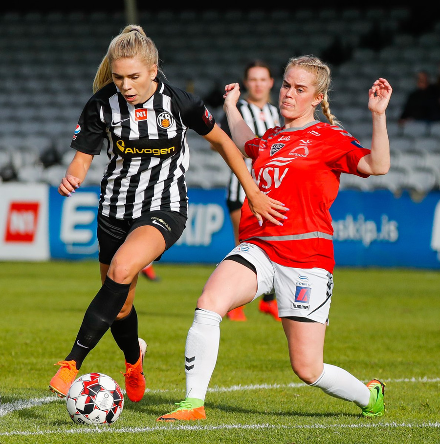 Kr-ingar byrja á fínni sókn sem endar með að Guðmunda Brynja fær boltann inn í teig en nær ekki að koma honum á markið.