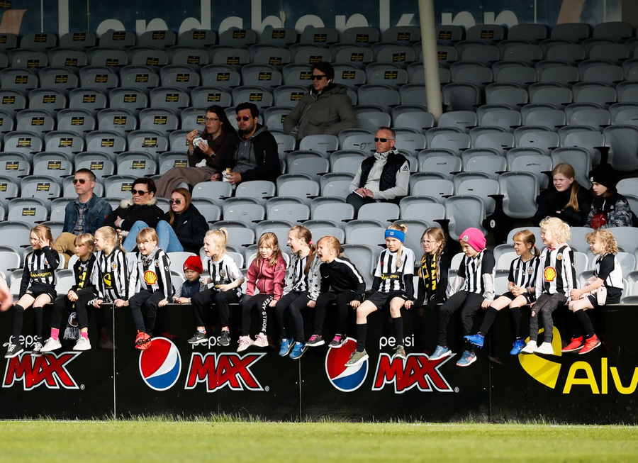 Liðin ganga inn á völlinn ásamt dómurum leiksins og framtíðarstjörnum KR, stúlkum úr 6. og 7.flokki á meðan Heyr mína bæn hljómar í hljóðkerfinu.