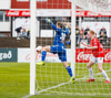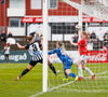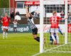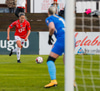 Vandræðagangur og barátta fyrir utan teiginn. Lilja nær að koma boltanum fyrir markið en leit ekki út fyrir að vera skot á markið. Hann sveif hins vegar yfir allt og alla og hafnar í fjærhorninu.