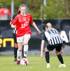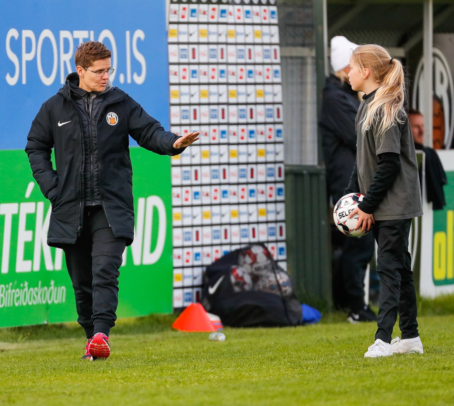 Ásdís með langan bolta á fjær en engin mætt þar.