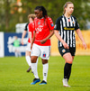 Cloé með sprett upp kantinn og reynir skot að marki sem fer í varnarmann og í hliðarnetið. Hornspyrna!