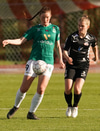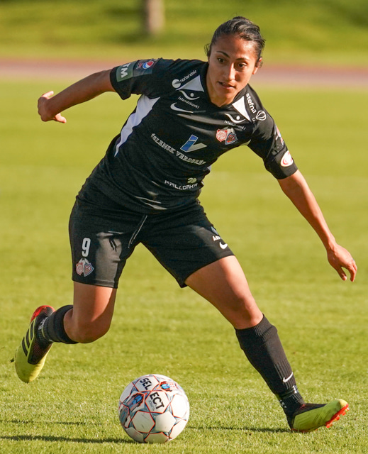 Sandra Mayor kominn upp að teig Breiðabliks og ætlar að setja boltann inn á Þórdís Hrönn en snertingin svíkur hana.